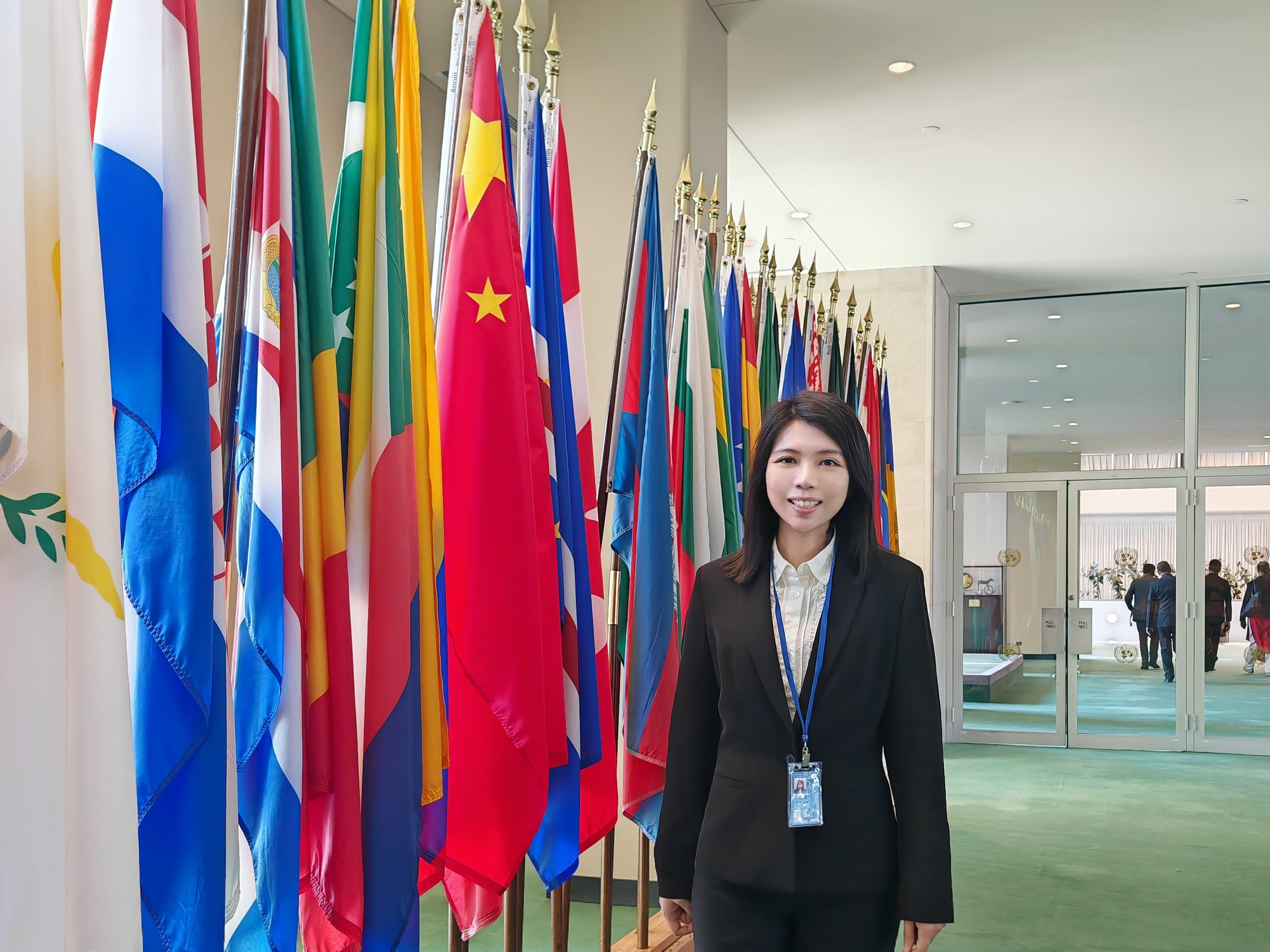 The photo shows Cindy at the UN Headquarters Building in New York.