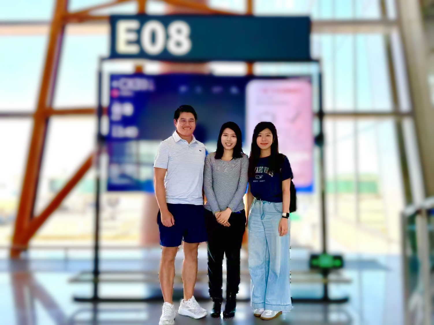 The photo shows the three of them at the Beijing Capital International Airport.