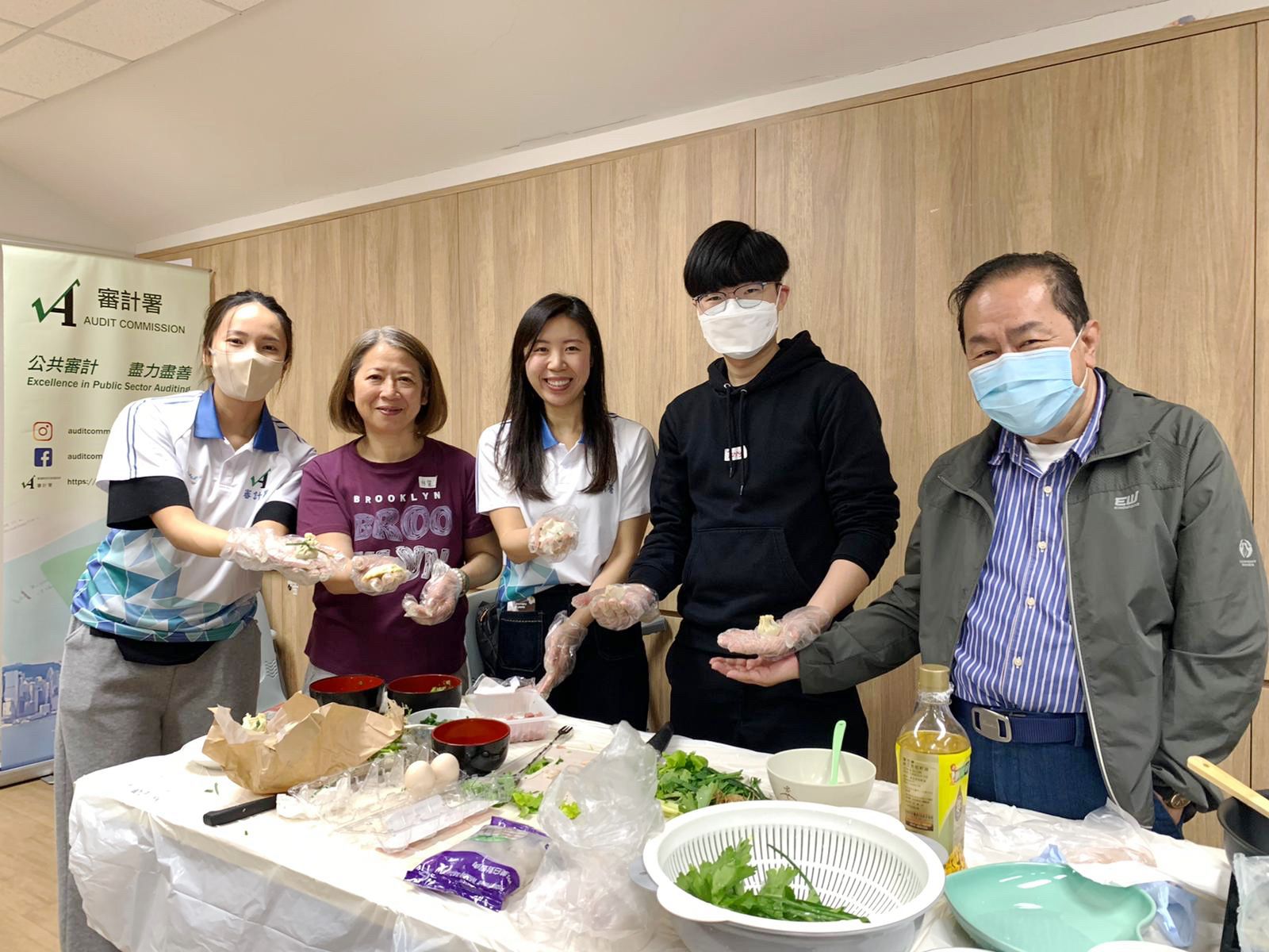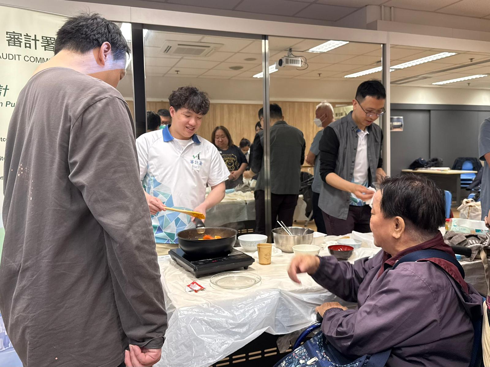 On the morning of 14 February 2026 (Saturday), a team of nearly 20 volunteers, comprising Audit Commission (Audit) staff and their family members, offered their service at the Kowloon East PHAB Centre, where they spent time with members of the Centre to spread the message of social harmony and inclusion. In addition to playing games and making simple, healthy dishes together, the volunteers and the members also took the opportunity to celebrate Chinese New Year and gave each other their heartfelt blessings.