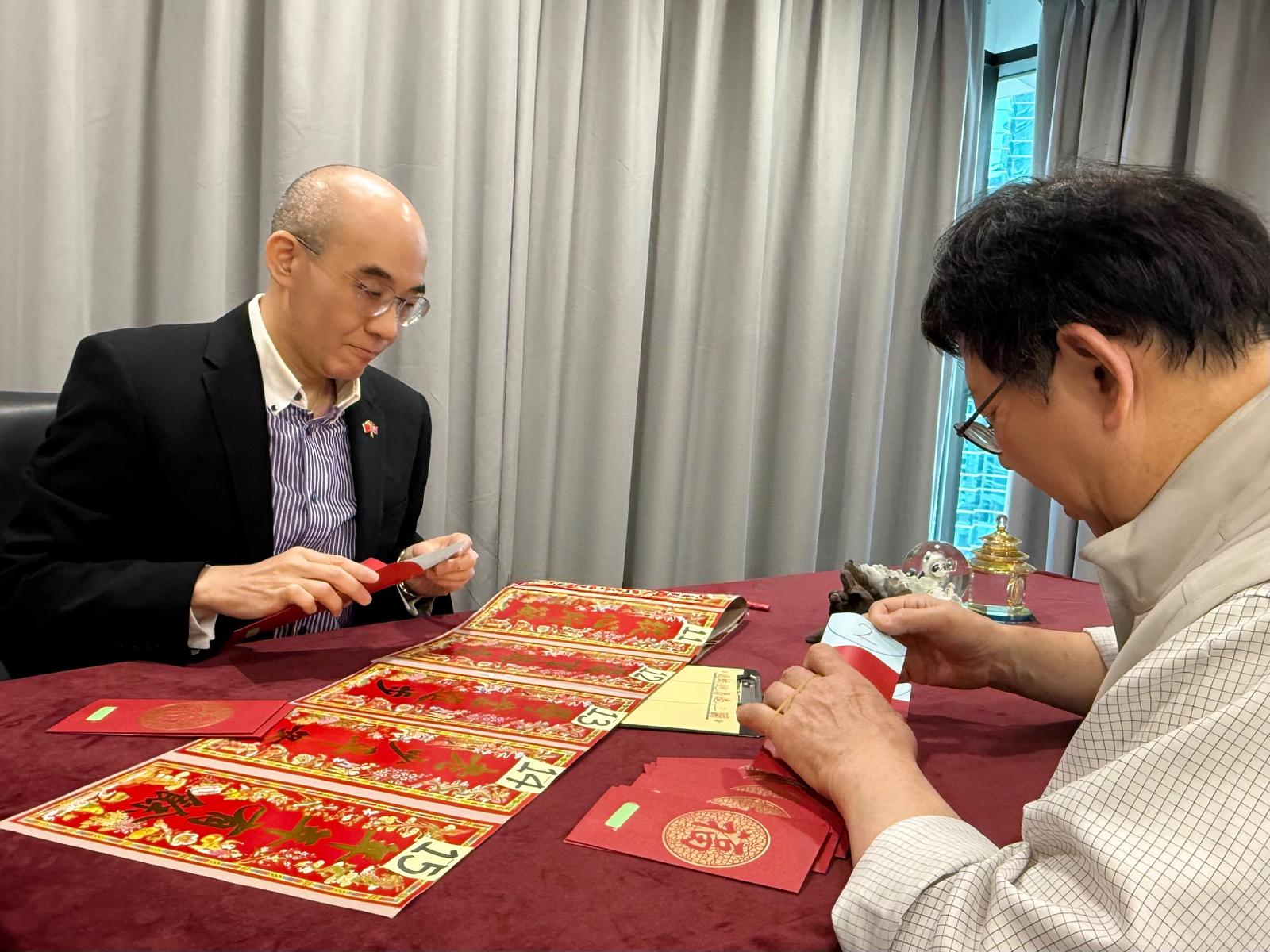 With the Chinese New Year just around the corner, Audit volunteers also stopped by the neighbourhood nearby to give the residents care and blessings. They also seized the time to spread anti-scam messages to the public.